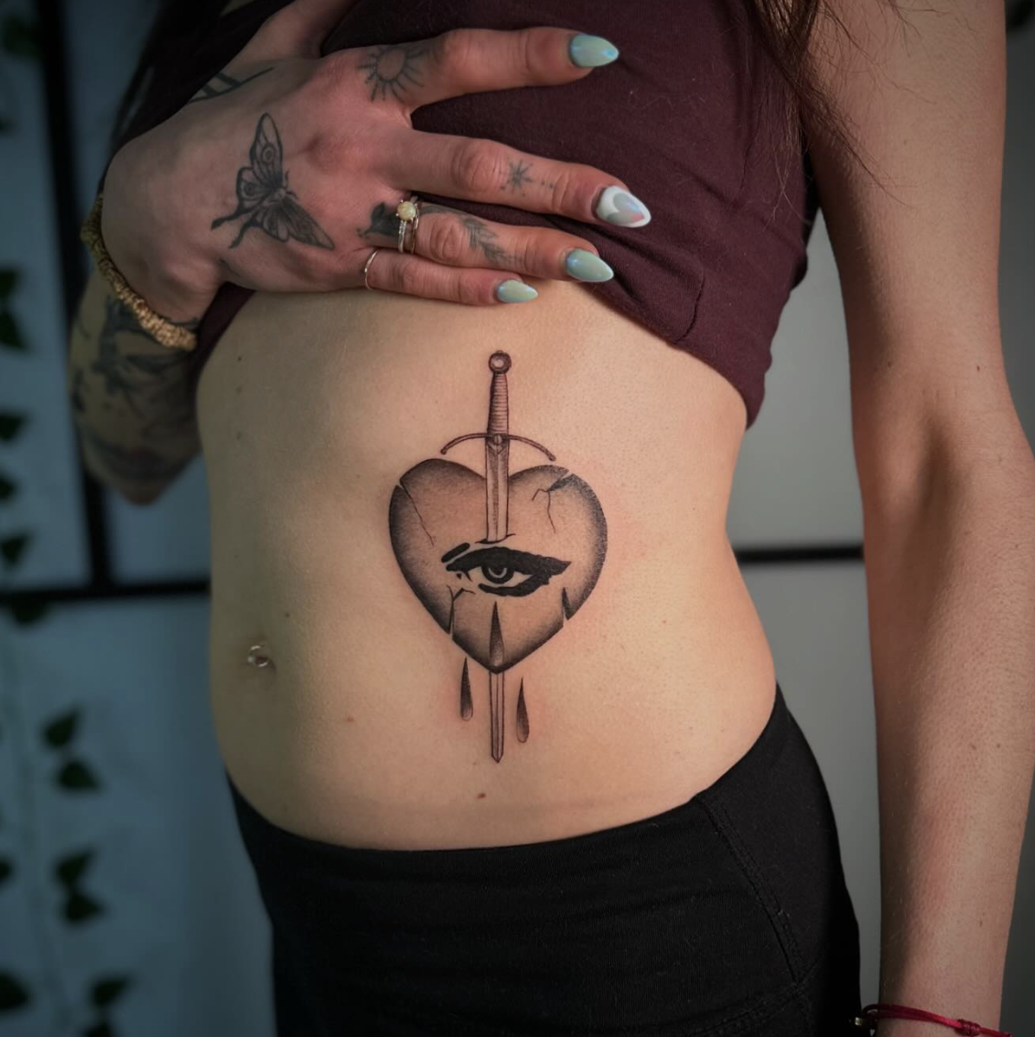 Eyes, hearts, lady faces and florals. Love blackwork.